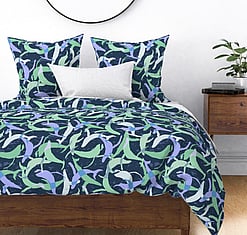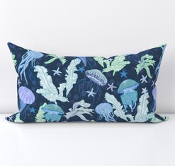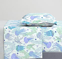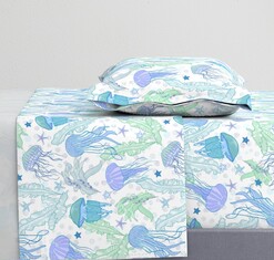 Ocean Creatures dives into the mystery and movement of the sea, featuring jellyfish, whales, coral, and starfish in fluid, hand-drawn forms. With two coastal-inspired colourways, this collection blends aquatic texture and playful rhythm to bring an oceanic vibe to fabric, wallpaper, and home décor designs.