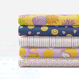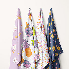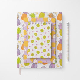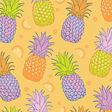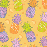 Pineapple Fruit Salad is a juicy collection of hand-illustrated surface patterns celebrating the bold shapes and vibrant colours of summer fruit. Featuring pineapples, kiwifruit, pears, and playful coordinates like polka dots and stripes, these designs bring a cheerful, fresh energy to any textile or surface. Available in mulitple colourways, each palette offers a fun twist on fruity nostalgia with a modern edge.