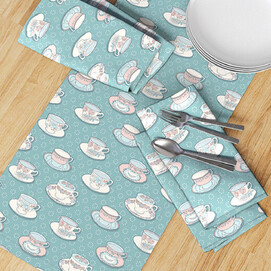 Teacup Florals is a nostalgic surface pattern collection inspired by vintage tea sets and romantic florals. With charming teacups, delicate blossoms, antique teaspoons, and coordinating ditsy and stripe prints, this collection is perfect for fabric, homewares, and stationery. Available in coral, green, and blue colourways, it blends timeless elegance with a fresh, modern palette.